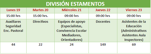 Desde el 19 al 23 de octubre se realizará la Jornada de Reflexión para el personal de los colegios de la Congregación. Por ello el jueves 22 no se realizarán clases virtuales en la mañana.