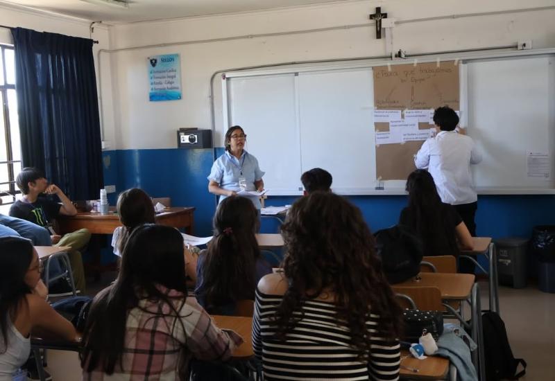 En la formación participaron estudiantes de nuestro colegio quienes fueron acompañados por la Encargada de Convivencia Escolar Lilian Saavedra, quienes no solo recibieron formación teórica, sino que además a través de diversas dinámicas han adquirido nuevas herramientas y han podido fortalecer su fe.