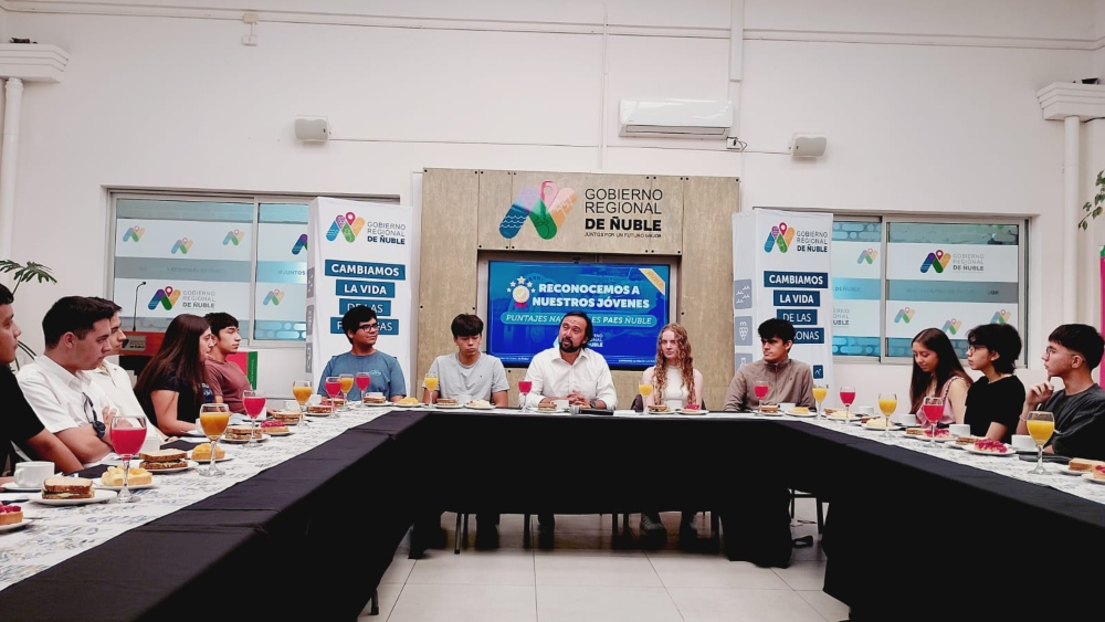 Hoy miércoles 7 de enero Diego Ravanal Durán -egresado de 4° Medio A 2025- asistió a un desayuno ofrecido por el Gobernador Regional de Ñuble, Óscar Crisóstomo Llanos. El motivo de la cita era para reconocerlo como parte de un grupo de 20 estudiantes de Ñuble que obtuvieron puntajes destacados en la PAES. En el caso de Diego, él obtuvo el puntaje máximo en M1 (Competencia Matemática 1).