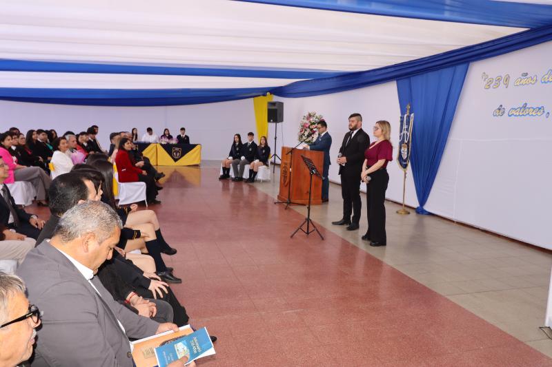 La actividad central fue una solemne ceremonia realizada en el patio del colegio la cual contó con la presencia de autoridades invitadas: Ricardo Mejías Casanova -Seremi de Educación de Ñuble, Juan Carlos Sánchez Doering -Director Regional de la Superintendencia de Educación de Ñuble, Anisia Toledo Bustos -Encargada Regional de la Unidad de Protección de Derechos Educacionales de la Superintendencia, Beatriz Muñoz Baquedano -Jefa de Gabinete del Departamento de Educación de Ñuble, autoridades de nuestro colegio encabezadas por el Director Hugo Flores, el Jefe de UTP Luis Maldonado, el Coordinador de Pastoral Pedro Osses, Padre Alejandro Úbeda Negrete -Capellán del colegio, Representantes del Centro General de Padres y Apoderados (CGPA), Estudiantes representantes del Cesab, funcionarios del colegio, apoderados y estudiantes representantes de los cursos, e invitados especiales.