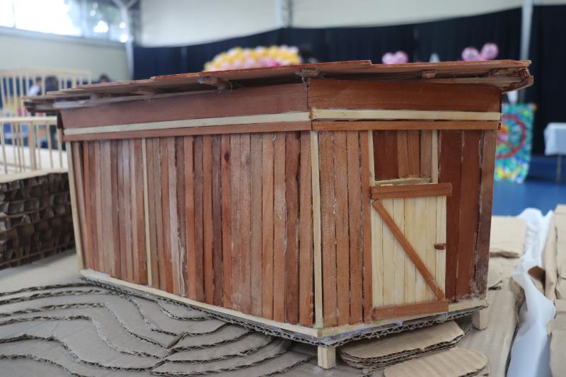 La muestra incluyó dibujos, pinturas, maquetas, productos hecho con material reciclado, impresiones en xilografía, e información sobre arquitectos destacados.