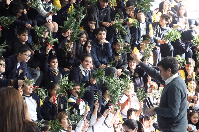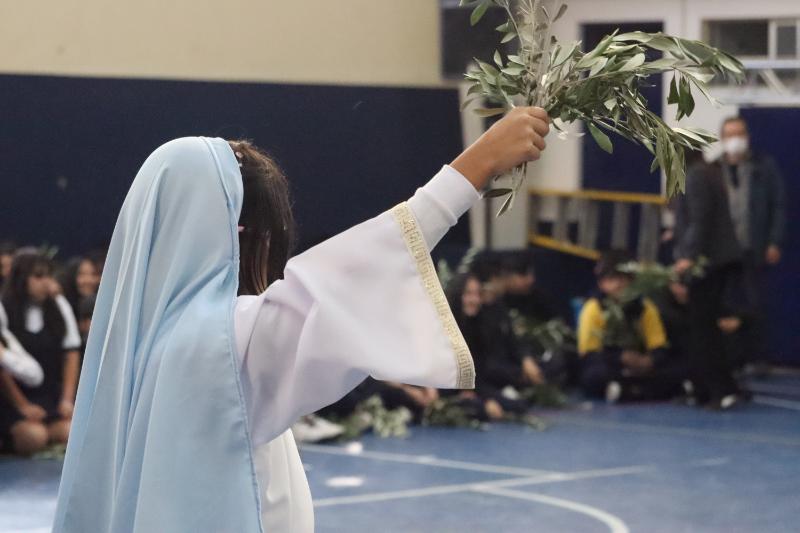 Estudiantes de 3° a 6° Básico estuvieron a cargo del acto, con las lecturas, oraciones y la representación de la entrada de Jesús.