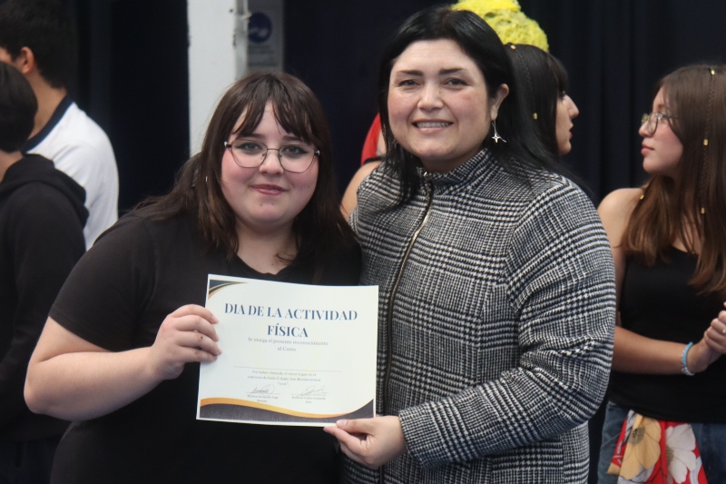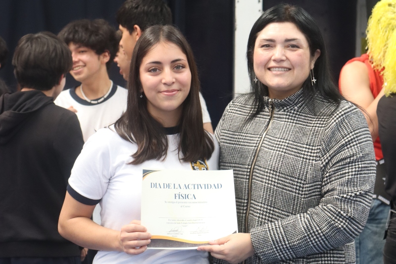 En el último bloque los cursos de Enseñanza Media también tuvieron su momento de zumba, para continuar con una competencia de coreografías preparadas por cinco cursos de Media, los cuales recibieron un diploma por su participación.