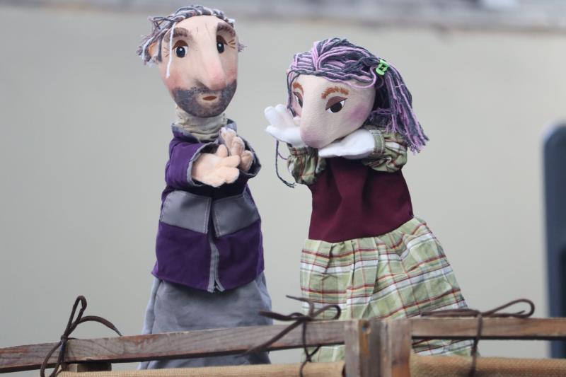 En la tarde el gimnasio se llenó de risas y gritos de "El beso, el beso" en la presentación de la obra "La espera" de la Compañía de Títeres Vagabundo, quienes el año pasado recibieron el estatus de "patrimonio cultural inmaterial" de la región.