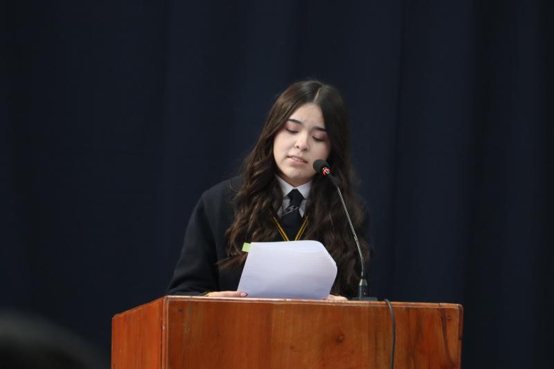 La alumna de 3° Medio B Valentina Contreras Recabal, nueva presidenta del Cesab, agradeció la gestión de la directiva saliente y a quienes apoyaron a la lista en las elecciones. A nombre de la directiva manifestó estar abiertos a escuchar las inquietudes y propuestas de sus pares. y a promover actividades para el fortalecimiento de la convivencia escolar y la participación de todos. Invitó además a la comunidad a trabajar juntos para lograr un espacio más inclusivo.