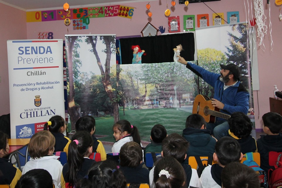 El viernes 7 de mayo el Kínder recibió la entretenida visita de un equipo de SENDA Previene, quienes instalaron un retablo y a través de títeres, entregaron un mensaje en torno al tema de la prevención del consumo de drogas.