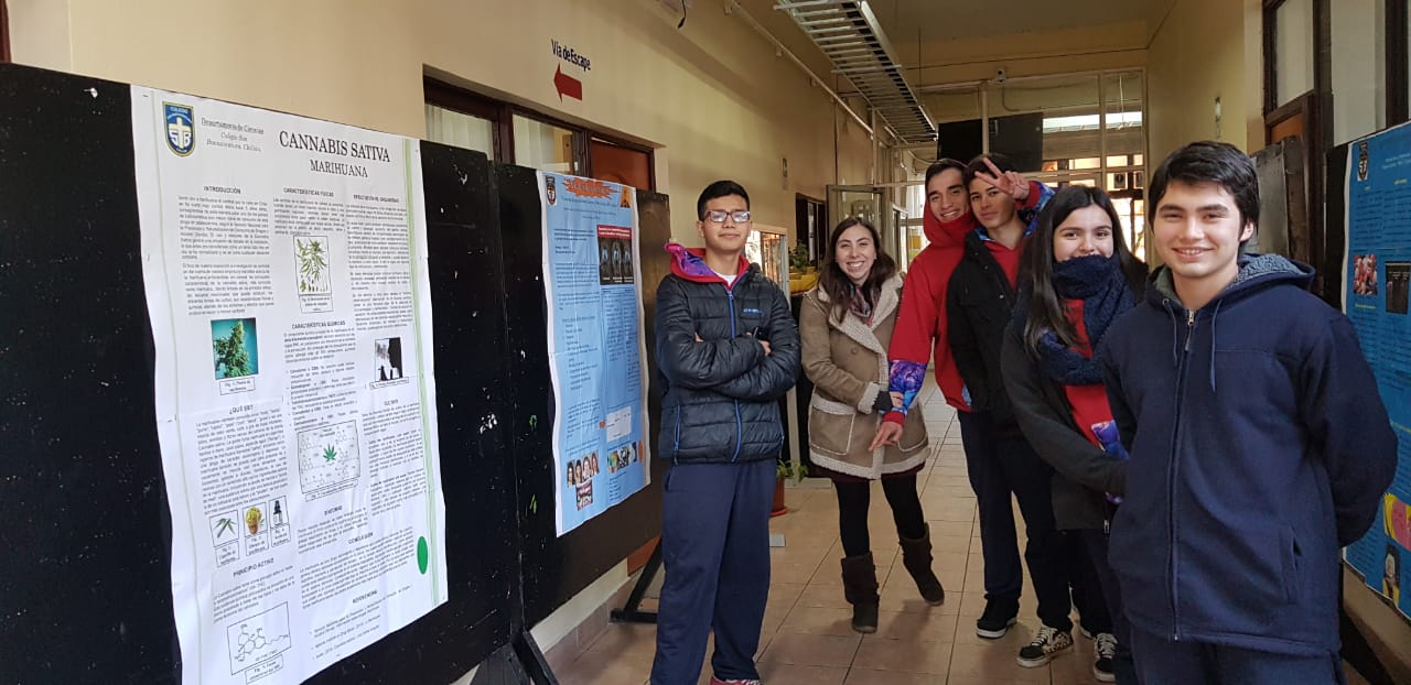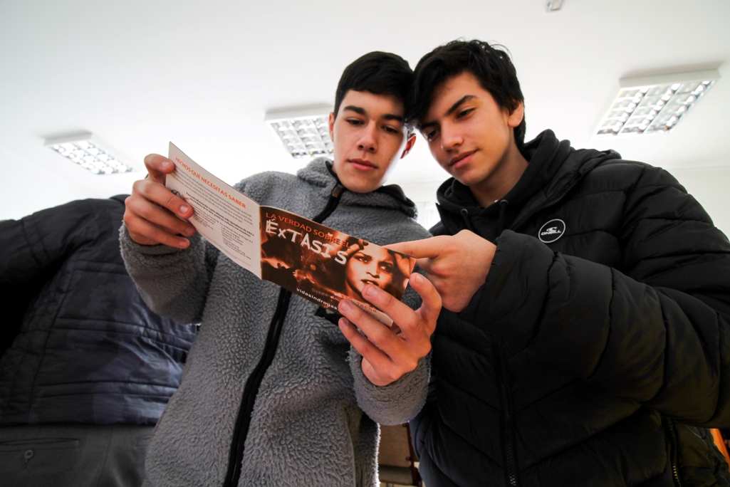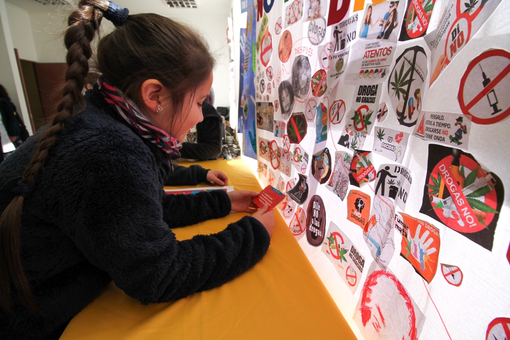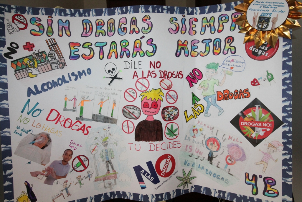 Además se exhibieron afiches preparados por los cursos la semana pasada, una presentación con el dramático "antes y después" de celebridades que cayeron en las drogas, y folletería sobre el tema.