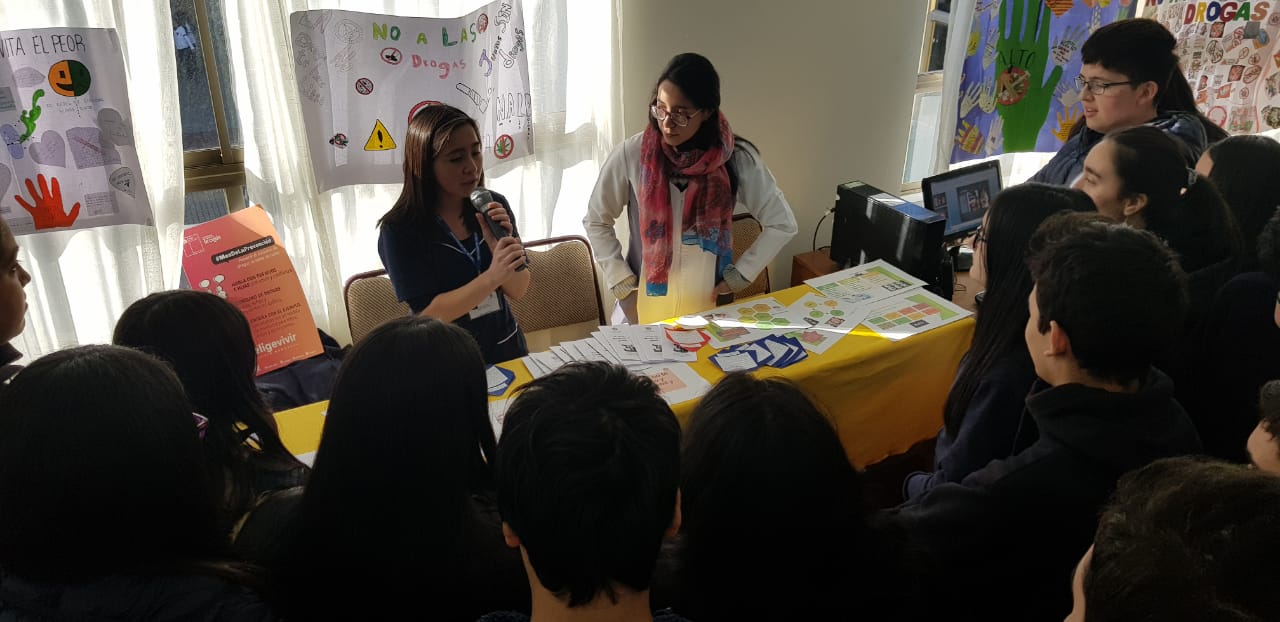 Los cursos asistieron a la feria en turnos, recibiendo información de alumnos a través de paneles y trípticos, de especialistas del Cesfam Violeta Parra y en la tarde se sumó Carabineros de Chile y Senda (Servicio Nacional para la Prevención y Rehabilitación de Drogas y Alcohol).