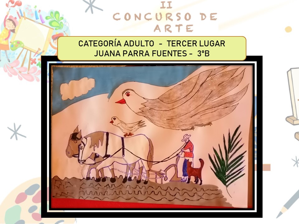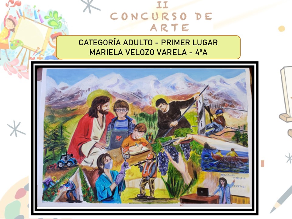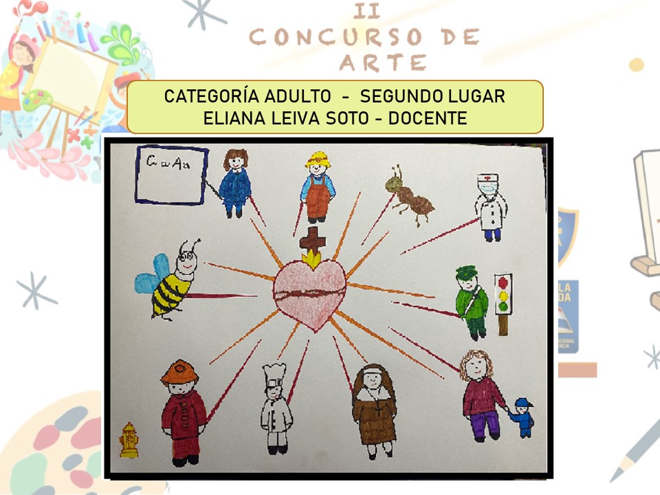 Dentro del 2° Concurso de Arte "Los pilares se viven con fe y esperanza en pandemia" como parte de las actividades del aniversario de la Congregación, el jurado de la fase local ya eligió a las obras ganadoras. El primer lugar de cada categoría representará al colegio en la fase nacional, que reunirá los trabajos de los seis colegios a cargo de la congregación.